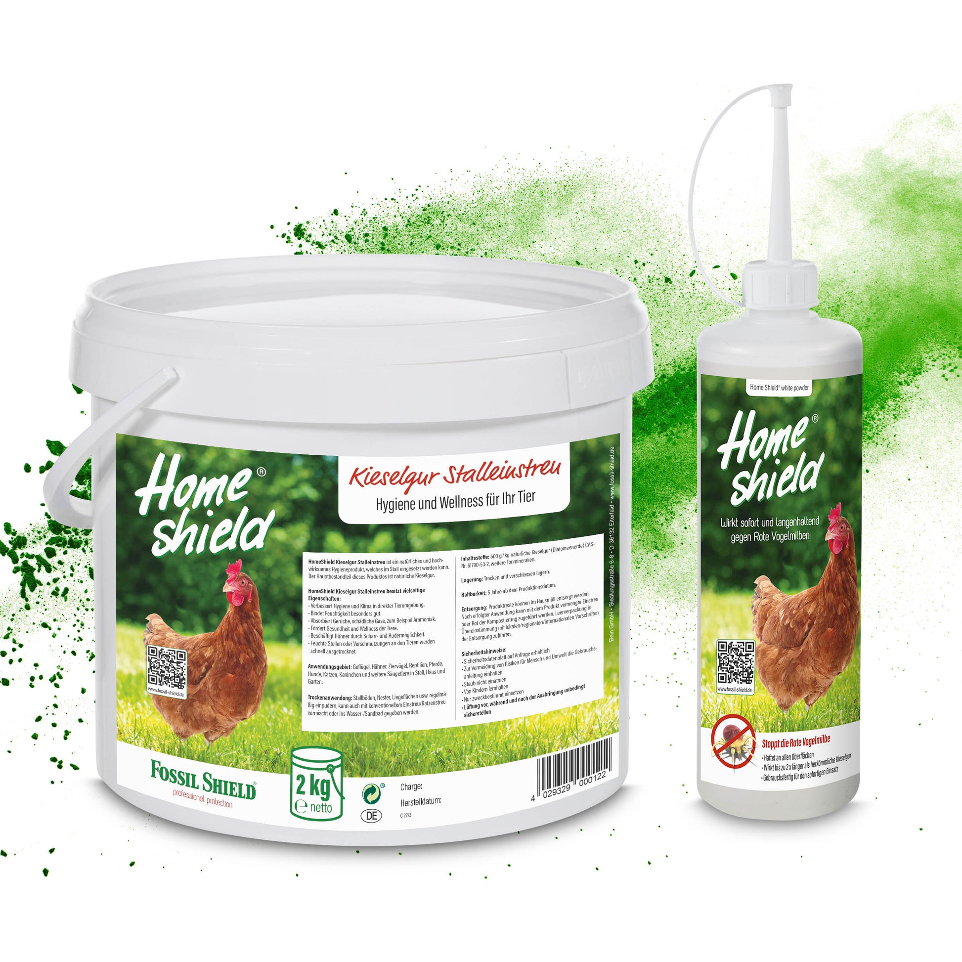 Home Shield® Bundle 98.0 weiß 200g Flasche und 2kg Kieselgur Stalleinstreu im Eimer